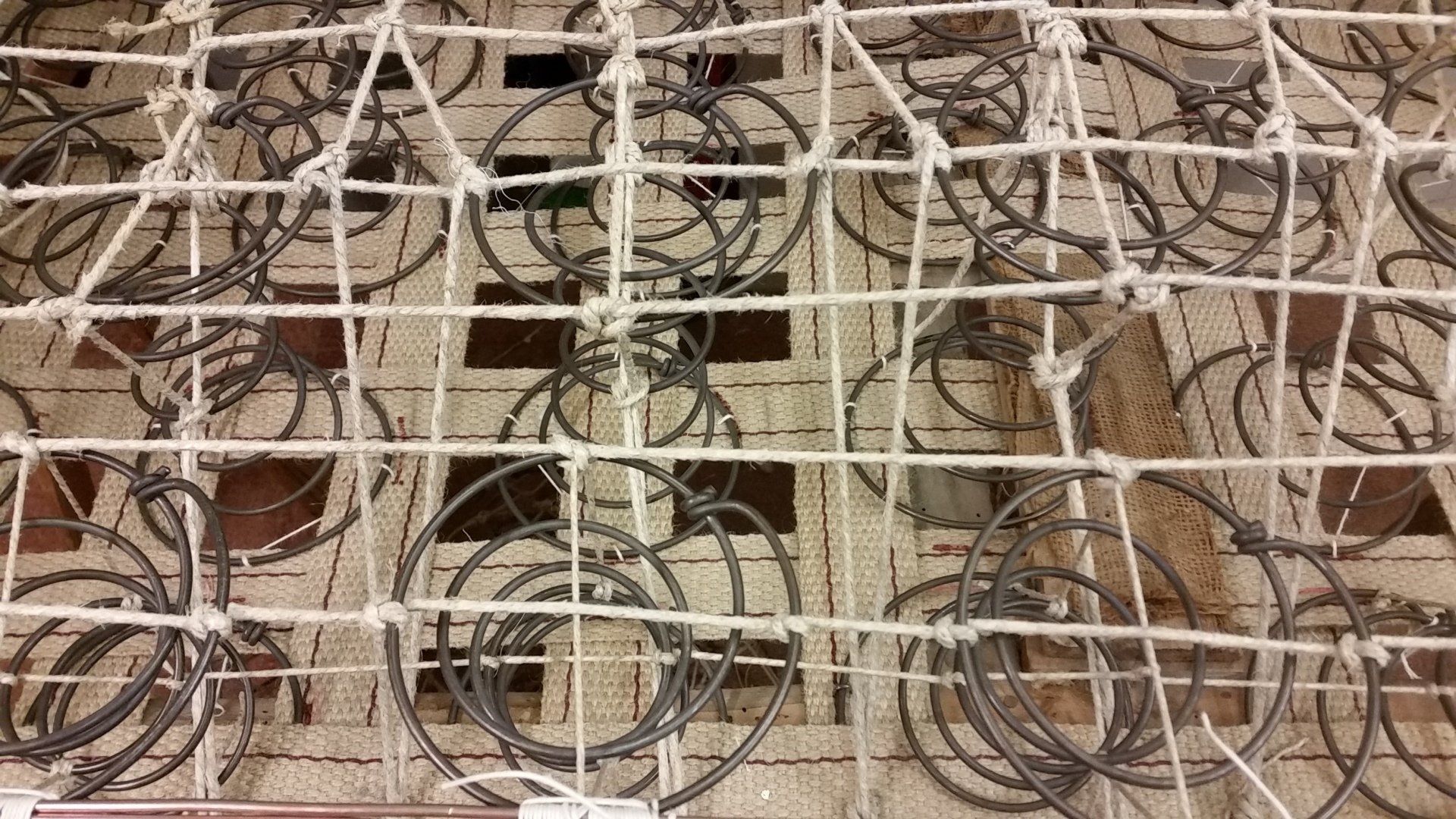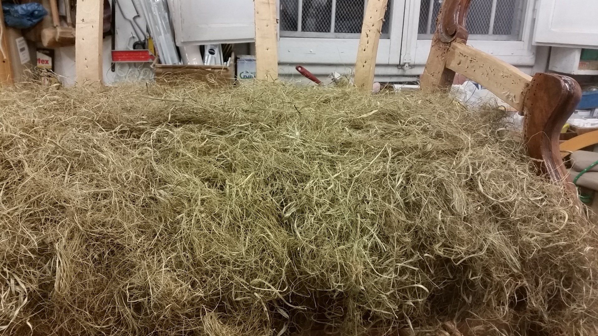 Le lavorazioni delle imbottiture sono eseguite con materie prime naturali come crine vegetale, ovatta di cotone, tela juta, cinghie e corde in canapa.